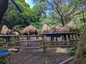 A park tele van állatetető állomásokkal – érdemes néhány 100-200 rúpiás bankjegyet zsebre vágni. Zsiráfokat etethetsz (igen, a nyelvük hosszú és kicsit érdes), gidákat, nyulakat, őzeket vagy pónikat simogathatsz, etethetsz. Egyes automaták csak készpénzt fogadnak el, így nem árt előre felkészülni.